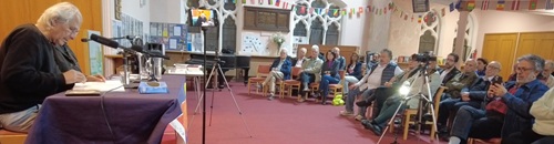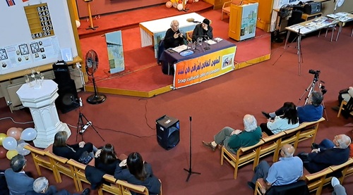 بهذه القصيدة استهل الضيف الشاعر الحمداني أمسيته واردفها بقصائد أخرى وقبل أن يقدمه للحضور الفنان التشكيلي والكاتب يوسف الناصر، الذي ذكر أن تقديم صلاح، صاحب المنجزات المتعددة في المسرح والتمثيل والكتابات وهو الذي لديه ٧٢ كتابا لحد الآن، مسألة في غاية الصعوبة ، لكنه اختصر سيرته الذاتية واقترح أن يقرأ أبوابها فقط ومنها أنه في مجال الإخراج قام بإخراج عدد من المسرحيات في فرنسا وأشار إلى أن صلاح لم يدرس الفن المسرحي في العراق إنما درسه في باريس، وأكد إنه لم يدرس شيئا في العراق حيث انه لم ينه الصف الثالث الابتدائي، وهنا عقب صلاح ضاحكا، مقراً، على إنه لم ينه الصف الأول حتى، وليس الثالث. وأضاف يوسف أن صلاح عند مغادرته العراق كان في خطواته الأولى بكتابة الشعر، ولم يتعرف على المثقفين في العراق، وكل طاقات صلاح لم تظهر إلا في فرنسا. ونوه أن صلاح سيتحدث في هذه الأمسية عن أبرز محطات حياته ومنجزه الإبداعي. وأضاف يوسف ان صلاح كان سجينا مثاليا في العراق، لأنه كان السجين السياسي الوحيد بدون حزب ينتمي إليه. وعن اصداراته المنوعة أضاف ان أكثرها كانت باللغة الفرنسية تُرجم بعضها إلى اللغة العربية. اما اصداراته العربية فعددها ستة عشر كتابا موزعة بين الشعر والسرد، في حين نتاجه الأدبي باللغة الفرنسية ضعف هذا العدد بثلاث مرات. اضافة إلى اصداراته الشعرية العربية المترجمة إلى الفرنسية له أيضا كذلك إصدارات قصصية بالعربية ترجمها إلى اللغة الفرنسية مع ايزابيل زوجته. وهي شاعرة أيضا. وذكر يوسف أيضا إنه ساهم شخصيا في رسم أحد كتبها. وشارك صلاح، بكتب فنية بقائمة طويلة جدا، مع فنانين آخرين، هذا إضافة إلى انطولوجيات احتوت على شعره.. وعلق يوسف الناصر على ما ذكره قائلا: