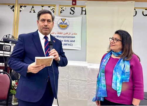 " باسم منتدى الرافدين للثقافة والفنون نرحب بالقنصل العام لجمهورية العراق في ديترويت السيد محمد حسن سعيد محمد، وطاقم القنصلية، فأهلا وسهلا بكم.