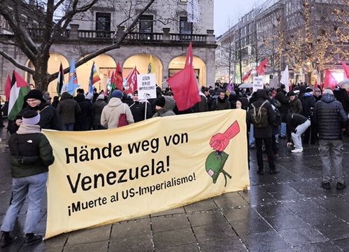 وعلى سبيل المثال، لا الحصر انتقد حزب اليسار الألماني بشدة الغزو، وطالب يان فان آكن، الرئيس المشارك للحزب، بفرض عقوبات: "أي شخص ينتهك القانون الدولي ويختطف رؤساء، مثل ترامب، يمارس إرهاب دولة وحشيً. من يفرض عقوبات على روسيا، عليه أيضاً أن يفرض عقوبات على الولايات المتحدة".