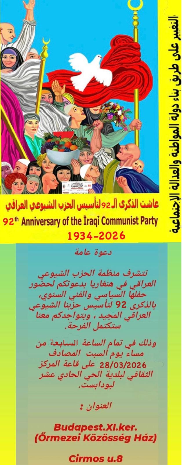 The party will continue to work with the Sadrist movement and other members of the Sairoun Alliance on the basis of its programme which has adopted and clarified the demands of popular protest movement. It also converges with the party's national democratic programme that calls for putting an end to the system of political sectarianism and establishing a democratic civil state based on the principle of citizenship and social justice.