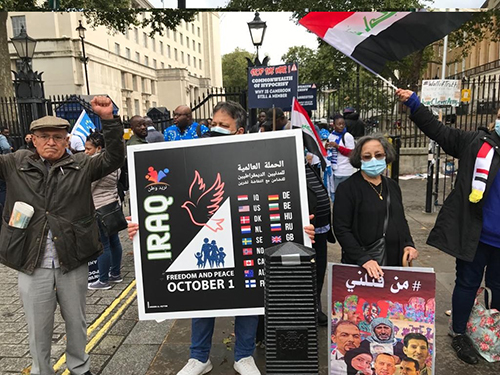 لندن .. صور من الوقفة الاحتجاجية في ذكرى الانتفاضة الثانية.. امام مقر رئيس الوزراء البريطاني ( ١٠ داونينغ ستريت).