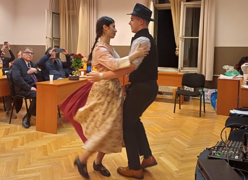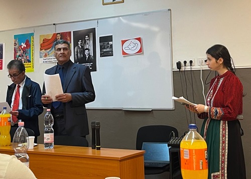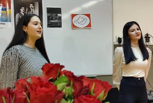 وبعد انتهاء البرنامج السياسي ابتدأ البرنامج الفني، حيث قدمت الشابة ياسمين قصيدة باللغة المجرية للشاعر الكبير يوجف أتيلا بعنوان (بقلب نقي)، وبعدها قدمت الشابة نرجس باللغة المجرية قصيدة للشاعر العراقي مهدي قاسم (إشراقات) ثم قدمت كل من الشابتين ياسمين وشهرزاد مجموعة من الأغاني باللغة الإيطالية. وبعدها تم تقديم رقصات شعبية مجرية من قبل الشابة نرجس والشاب المجري فيلموش صفق لهم الحاضرون طويلاً.