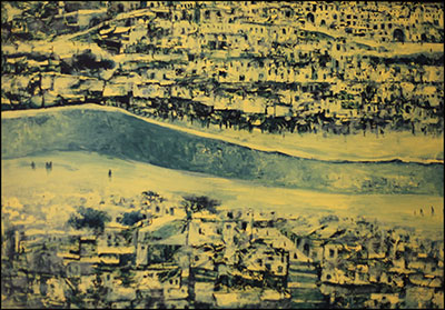 إن استدعاء صور الأمكنة الأولى هي في الحقيقة محاولة لخلق صور شعرية عنها، كما عبر عن ذلك مرة المفكر الفرنسي "غاستون باشلار"، وعن الفائدة الرئيسية للبيت كمكان يقول: "البيت يحمي أحلام اليقظة- والحالم- ويتيح للإنسان أن يحلم بهدوء". وعند الفنان "الداخل" ليست الأمكنة مثالية أو ساكنة أو صورة نوستالجيا لذكريات الماضي الجميل، بل هي أمكنة متحركة، تتغير مع الأحداث والزمن، كا في لوحات "الأهوار ومدن الزهايمر". وهو كغيره من المسافرين الأبديين، دأب على التواصل مع بلده ومشكلاته من خلال إيمانه بقوة الفن على تغيير الوعي والمفاهيم وعلى الاحتجاج، إذ كان العراق حاضرا برموزه وتاريخه وخرابه أيضا، حتى باتت صورة لأمرأة عراقية بثوبها التقليدي، تلف وجهها بربطة رأس سوداء وعباءة تتكرر في الكثير من أعماله، وتصبح أيقونة من شمع أسود يختم جلّ أعماله، خاصة في لوحة كبيرة -كما في أكثر لوحاته - أو هي مجموعة لمئات المصغرات حملت وجوه نساء، كأنها طوابع مكبرة لأمهات مفجوعات، وأخريات ينتظرن غائبين، زوجات وحبيبات وأخوات فزعات يجرح أرواحهن الفقدان. وفي لوحات "الأهوار" رسم مشاهد الحياة اليومية فيها بطريقة عين الطائر أو الصقر، في تجاور موضوعي لعين الفنان نفسه التي تسافر وتحلق فوق المشهد لتصور أكبر مساحة منه، بحيث تبدو حجوم الناس والطرق والبيوت أصغر وأبعد كما هي في ذاكرته، كأنها نظرة وداع لتاريخ مجيد من الأحلام والعمل الدؤوب والبهجة، واصطياد اللحظات الهاربة للدهشة الأولى.