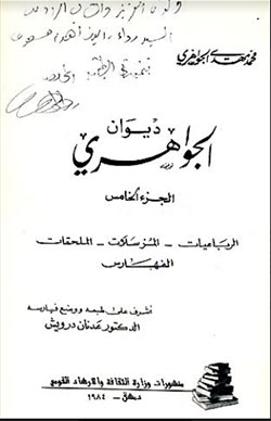 اتممت وزارة الثقافة السورية اصدارالجزء الأخير- الجزء الخامس، من ديوان الجواهري، عام 1984 وقد كان جزؤه الاول قد اصدرته عام 1979 .. وهي طبعة فريدة ، واولى من نوعها كما ندري، لأنها اعتمدت نشر القصائد وترتيب تسلسلها ليس زمنيا كما هو معتاد، ولكن وفق احرف المعجم (الابجدية العربية) التي جائت بها القوافي..