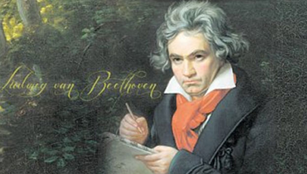 ولد الموسيقارلودفيج فان بيتهوفن ( Ludwig van Beethoven) في السابع عشر من كانون الأول عام 1770 وتوفي في السادس والعشرن من آذار عام 1827. كان ملحناً وموسيقاراً وعازف بيانو ألماني، وهوَ أحدُ الشخصيّات البارزة في الحقبة الكلاسيكيّة التي تَسبِق الرومانسيّة؛ ويُعتَبرُ من أعظَم عباقرة الموسيقى في جميعِ العصور وأكثَرهُم تأثيراً. وأبدَع بيتهوفن أعمالاً موسيقيّة خالِدة، كما له الفضلُ الأعظم في تطوير الموسيقى الكلاسيكيّة. وتَشمَلُ مُؤلّفاتُه تِسعَ سيمفونيّات وخَمسَ مقطوعاتٍ على البيانو وأُخرى على الكمان، واثنتينِ وثلاثينَ سوناتا على البيانو وسِتّ عَشرة مقطوعةً رُباعيّة وتريّة؛ كما ألّف أيضاً أعمالاً للصالونِ وأُخرى للجوقة وأغاني أيضاً.