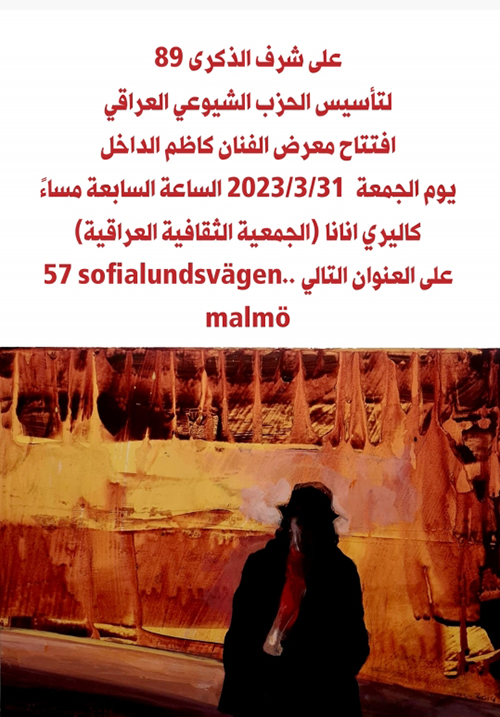 في أجواء احتفالية وعلى شرف الذكرى ٨٩ لتأسيس حزبنا، الفنان كاظم الداخل يفتتح معرضه الشخصي يوم ٣١اذار في كالري انانا ( مقر الجمعية الثقافية العراقي) مدينة مالمو وقد اختار الفنان الكبير كاظم الداخل هذا اليوم اعتزاز منه بهذه المناسبة العزيزة .