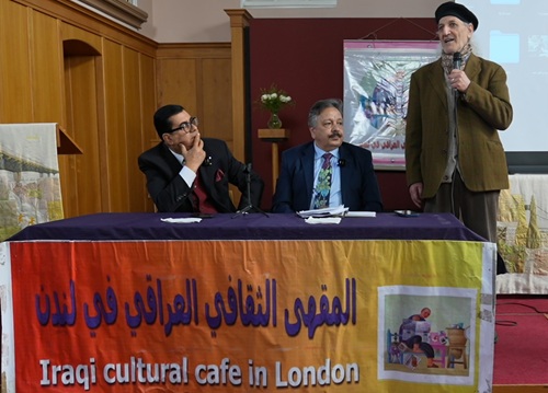 وبعد مقدمته الاستهلالية دعا الفنان الجيلاوي الحضور للترحيب معه بالضيف الفنان رعد بركات الذي شكر بدوره الحضور قائلا:" لي الشرف ان ألبي دعوة هذا المنبر، المقهى الثقافي العراقي في لندن، الذي يمثل منارة ثقافية مهمة في المهجر، ومن دواعي سروري ان أكون بينكم ومع القامات الفنية والأدبية هنا، وأتمنى ان تنال تجربتي المتواضعة إعجابكم واهتمامكم ، شكرا لحضوركم ".
