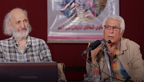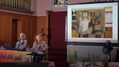 ( الفلاحة والمعزة ). كان جواد وفائق في فترة التعاون المشترك بينهما كما يقول المحاضر، قد خلقا ثنائيا رائعاً دفع بالرسم العراقي الى المعاصرة والحداثة والمحلية في آن واحد. ويأتي الفنان محمود صبري ليكمل الزاوية الثالثة في اللوحة العراقية ، بتقديمه الموضوع السياسي والإجتماعي الذي كان غير واضح آنذاك في أعمال الفنانين بمثل هذا الوضوح. اما الفنان شاكر حسن فقد قدم أعمالاً مهمة ضمن توجه (جماعة بغداد للفن الحديث) تعكس نضجه وريادته كذلك وهو من المفكرين ومساهم فعال في النقد الفني والتنظير الجمالي الى جانب الفنان محمود صبري والمعمار رفعة الجادرجي وان أعمالهم النظرية يجب ان تدرس في المعاهد والكليات الفنية العراقية وحتى العربية لأهميتها وجديتها وتميزها بالمعاصرة والتجديد.