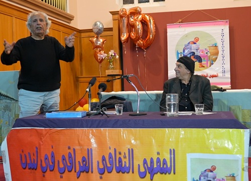ضيف المقهى في أمسيته الشهرية في ٢٦ أيلول / سبتمبر ٢٠٢٥ جاء من منفاه الباريسي (فرنسا) ليروي لزملائه عراقيي لندن حكايته كثيرة المنعطفات والتي تنطوي على سعيه الدائب منذ طفولته في شوارع وأزقة بغداد القديمة بانغماره بالعمل الشاق وهو صبي يافع، الأمر الذي حال دون أن يكمل دراسته الابتدائية مرورا باضطراره للتطوع بالجيش العراقي جنديا في صنفي الصاعقة والمظليين ثم سجنه من قبل النظام البائد ثم إلى مغادرته الوطن إلى فرنسا الذي يقيم فيها منذ أكثر من خمسين عاما ونيف. في باريس عمل ودرس وتكللت حياته هناك بأن يصبح ممثلا ومخرجا مسرحيا وسينمائيا وشاعرا وساردا، يكتب بالعربية والفرنسية، له اليوم أكثر من سبعين عملا أدبيا: إنه الشاعر ورجل المسرح صلاح الحمداني.