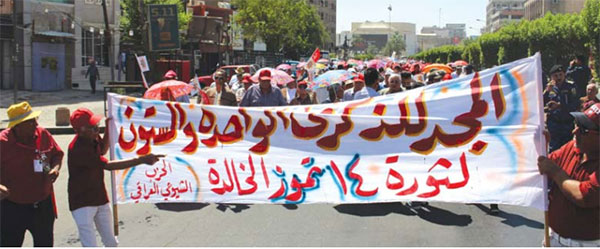 انطلقت مسيرة جماهيرية حاشدة من ساحة الفتح في بغداد، أمس صباحاً، في مناسبة الذكرة الـ 61 لثورة 14 تموز المجيدة، شارك فيها المئات من كوادر وأعضاء الحزب الشيوعي العراقي يتقدمهم قادة الحزب، اضافة الى نقابات واتحادات وشخصيات وطنية.