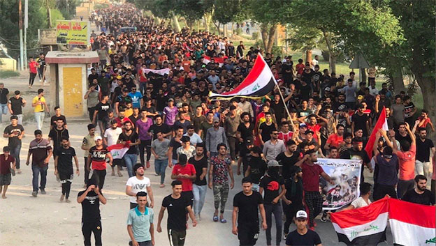 ويذكر أنه إضافة إلى” عدم القدرة على تنفيذ المطالب“، هناك اليوم أيضًا” أزمة سياسية ومالية وولاءات خارجية “من أطراف اختارت أن توالي أحد المعسكرين المتعاديين والمتحالفين مع العراق، الولايات المتحدة وإيران.