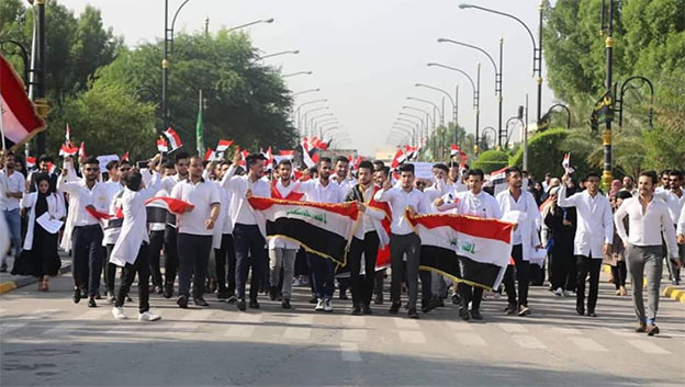 يستمر طلبة العراق في تسجيل المواقف التاريخية، تعكس صورة مشرفة لتاريخ الحركة الطلابية في العراق، من خلال انحيازهم الى قضايا الوطن ووقوفهم الى جانب الشعب في قضاياه المصيرية، واتشحت ساحة التحرير وسط بغداد باللون الابيض، وقد جاء الطلابُ معلنين استمرار اضرابهم ووقوفهم بوجه القمع والقسوة التي تقابلهم بها الحكومة وقواتها الامنية، متحدين كل اشكال التهديد والوعيد الذي مارسته السلطة من اجل منعهم عن التعبير عن آرائهم.