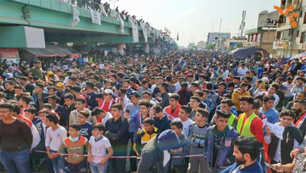 وأغلقت حشود من المتظاهرين، الجسر المؤدي نحو المنطقة الخضراء، بعدما شكلت جدارا بشرياً، لمنع أي اندفاع، وهي تهتف بسلمية التظاهرات والبقاء في ضمن رقعة الاحتجاجات لا أكثر.