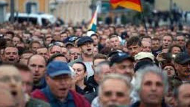 وفي مناسبات بدت فيها سياسة الحكومة الألمانية "ليبرالية يسارية"، جرى توجيه غضب معاداة الشيوعية ضد سياسة الحكومة. وفي الوقت نفسه عاش الالمان الشرقيون، ماذا تعني الرأسمالية، بدأوا ينطوون على الذات مبتعدين عن العالم. وعلى هذه الأرضية نشأ حزب "البديل من اجل المانيا" النازي الجديد، كانشقاق من اليمين التقليدي بشقيه الليبرالي والمحافظ، محتويا النمط الفاشي لمعاداة الشيوعية، باعتباره بديلا رأسماليا قوميا، مقابل الرأسمالية الدولية، مستعدا دوما لإكمال ما بدأه حزب "العمال الاشتراكي القومي"، أي النازيون القدامى.