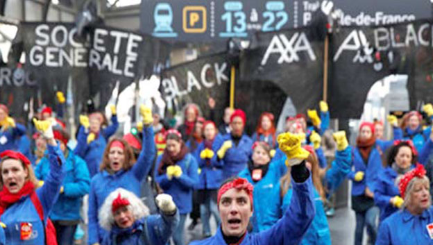 وعادت الاحتجاجات العمالية الحاشدة في اليوم التالي الى الشوارع، لأن موقف النقابة هو رفض خطط "الاصلاح" الحكومية، فالنقابة ترفض تعميق عدم المساواة وترسيخها، وتريد عبر الاحتجاجات والاضرابات فرض منطق مختلف للمناقشة واتخاذ القرارات. وستنظم الـ سي جي تي ونقابات اخرى مؤتمرا مضادا في اذار المقبل لمناقشة كيفية تمويل إصلاح حقيقي وعادل. فقانون التقاعد النافذ يحتاج الى تطوير، على الرغم من انه الأفضل في العالم، لكن ماكرون وحكومته طرحوا مشروعا فيه الكثير من التمييز ضد النساء، كما انه سيئ ماليا بالنسبة للعمال الأجراء والعاطلين عن العمل. وهكذا فان الحكومة تهاجم نظاما تقاعديا نافذا قائما على التضامن.