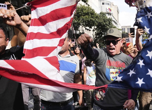 أنصار مادورو الغاضبون يمزقون العلم الأمريكي