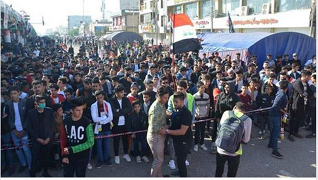 ومع الطلبة البواسل التحمت مجاميع كبيرة من الشباب والموظفين وأصحاب المهن وأبناء العشائر، في وقفة جماهيرية عارمة غصت بها ساحات الاعتصام والتظاهر، ودللت بجلاء على اندحار مساعي شق الصفوف والاستفراد بالشباب المنتفض وقمعه بوحشية حتى لا يعاود الاحتجاج باي شكل وتحت أي مسمى.