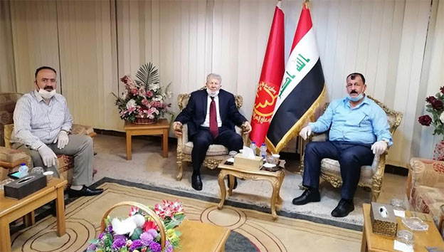 الرفيق علي مهدي أكد خلال الزيارة موقف الحزب الرافض لكل أشكال العدوان والخرق لسيادة العراق وأجوائه، والذي عبر عنه في بيانه الصادر بتاريخ 15/6/2020 من خلال استنكار الانتهاك التركي السافر المتكرر لسيادة العراق، ومطالبته بإدانة العدوان من قبل الحكومة العراقية ومجلس النواب وحكومة الإقليم .