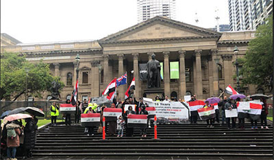 برغم البرد والمطر تجدد الوقفات التضامنية من أبناء الجالية العراقية في ملبورن / استراليا، تندد بقتل المتظاهرين المسالمين العزل المطالبين بحقوقهم الوطنية وبالإصلاح وبأبسط مستلزمات العيش الانساني، وكان لمشاركة حزب الخضر الاسترالي ودعمه بموقف تضامني مع شعبنا العراقي المنتفض ضد الفساد والاستبداد والمحاصصة والطائفية، وتعالت الهتافات الحماسية تخللتها كلمات احتجاجيه لبعض المنظمين للتظاهرة ..حي على العراق ... نريد وطن يُحترم ... ولم ننس موعدنا يوم 25 تشرين الأوبل وهناك اللقاء ... هبوا ضحايا هؤلاء المستبدين ... عاش العراق اولا ...