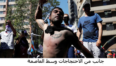 وتتحدث المنظمات المدافعة عن حقوق الإنسان، بما في ذلك مفوضية الأمم المتحدة، عن انتهاكات جسيمة لحقوق الإنسان من قبل قوات الأمن جراء قمع الاحتجاجات: أكثر من 30 قتيلاً، وآلاف الجرحى، بما في ذلك 460 أصيبوا في عيونهم بواسطة قنابل الغاز المسيل للدموع والرصاص المطاطي، الذي تبلغ نسبة المعادن في صناعته، وفقًا لدراسة أجرتها جامعة تشيلي، 80 في المائة، ولا يزال هناك 2500 متظاهر رهن الاعتقال منذ بدء الانتفاضة.