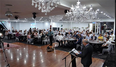 ،اقام الصالون الثقافي في منتدى الجامعيين العراقي الاسترالي المهرجان بحضور رسمي ، يتصدره الاستاذ علي وتوت القائم بأعمال القنصل العراقي في استراليا وشعبي غصت به قاعة مونومور في مدينة فيرفيلد اليوم الاحد الموافق 9-12، وكان على عرافة الحفل الزميلين اميل غريب وسلام خدادي