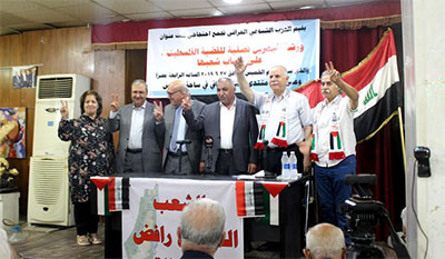 أقام الحزب الشيوعي العراقي بالتعاون مع سفارة دولة فلسطين في العراق، الخميس الماضي في بغداد، مهرجانا خطابيا - فنيا تضامنا مع الشعب الفلسطيني في إقامة دولته العادلة، ولشجب واستنكار "ورشة البحرين".
