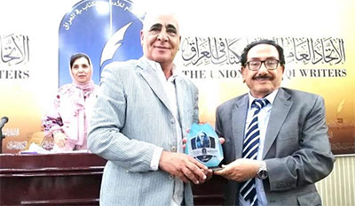 وفي الختام سلم الناقد فاضل ثامر لوح الجواهري إلى المخرج المسرحي إبراهيم حنون.