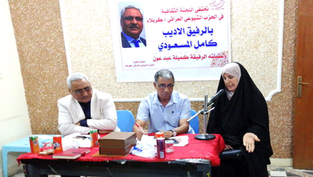 احتفت اللجنة الثقافية التابعة إلى اللجنة المحلية للحزب الشيوعي العراقي في محافظة كربلاء، أخيرا، بالرفيق الأديب والمحامي كامل عبد علي المسعودي، وعقيلته الرفيقة كميلة عبد عون، اللذين تحدثا عن جوانب من سيرتيهما السياسية ومحطاتهما النضالية.