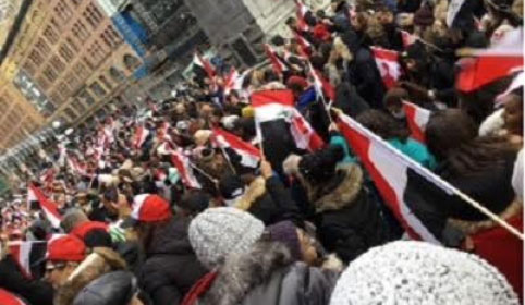 فقد نظم ناشطون عراقيون في تورنتو اكبر المدن الكندية، وقفة احتجاج حضرها المئات من العراقيات، والعراقيين، يهتفون لبغداد، و ساحة التحرير.