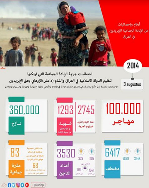 أرقام واحصائيات عن الإبادة الجماعية للإيزيديين في العراق التفاصيل سلام عادل الكيم فضاءات 04 آب/أغسطس 2020 3721 عرض مقالات: سلام عادل الكيم السابق التالي