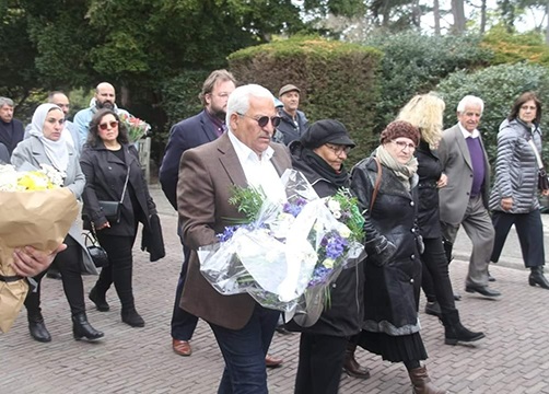 واعتزازا بالفقيد نُثرت باقات ورد كثيرة على قبره من المكتب السياسي للحزب و منظمة الحزب الشيوعي العراقي في هولندا وبلجيكا، و تنسيقية التيار الديمقراطي، ورابطة المرأة العراقية، وجمعية النساء العراقيات وغيرها من الجمعيات، واستكملت المراسم بتقديم التعازي والمواساة لعائلة الفقيد التي قدمت امتنانها لهذا الحضور البهي.