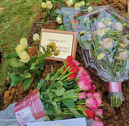 بعد اتمام مراسم الدفن كلل الضريح بباقات الزهور باسم قيادة الحزب الشيوعي ومنظمته في بريطانيا ورابطة المرأة العراقية والمنتدى العراقي في بريطانيا ومن العديد من الرفاق و من أصدقاء العائلة وذوي الفقيدة.