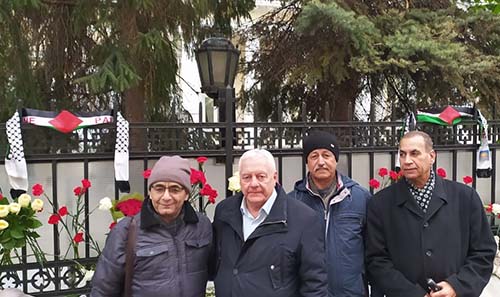 زار وفد من قوى اليسار العربي في روسيا الأتحادية في 13/10/2023 سفارة دولة فلسطين واضعا باقات من الورود تخليدا لضحايا العدوان الهمجي الذي تشنه حكومة نتانياهو الفاشية وقوات الاحتلال بحق أبناء شعبنا البطل في غزة الصامدة.