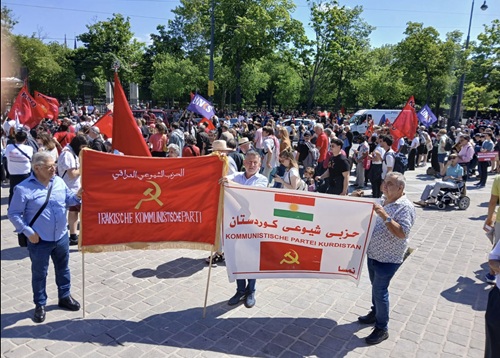 وفي تمام الساعة الحادية عشرة صباحا انطلقت من أمام مبنى أوپرا فیینا الشهير مسيرة الأول من أيار التي ينظمها الحزب الشيوعي النمساوي واتحاد نقابات العمال ومنظمات يسارية أخرى وبمساهمة رفاق منظمة الحزب الشيوعي العراقي والشيوعي الكردستاني في النمسا، حاملين الرايات الحمر وشعارات تحيي الطبقة العاملة وتمجد نضالاتها من أجل حقوقها المشروعة، واختتمت المسيرة أمام مبنى البرلمان حيث موقع الاحتفالية.