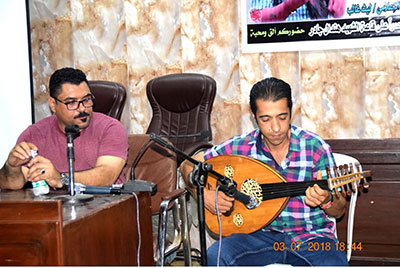 وتابع قائلا ان المحتفى به لديه اهتمامات عدة بالإضافة إلى الموسيقى، من بينها الفلسفة والعلوم الإنسانية، وكتابة القصة القصيرة والنقد الأدبي، وهو عضو الاتحاد العام للأدباء والكتاب.